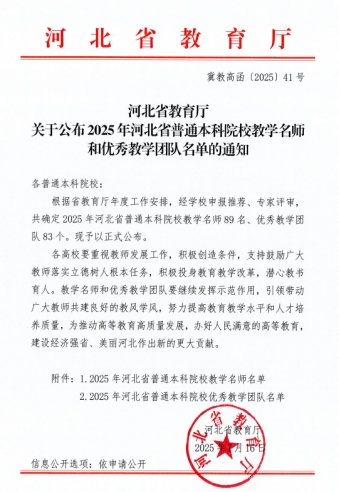 《2025年河北省普通本科院校教学名师和优秀教学团队名单》