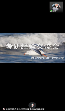 然后,邀请了顺利被辽宁师范大学心理健康教育专业录取的20应心接本专业的张霖同学为我们分享她的考研经验,她为同学们介绍了一些好的平台和APP帮助同学们更好的了解考研,然后分别针对政治、英语两个科目为大家提出合理规划,最后在考研时间安排上为大家提供了自己的经验和见解,为大家的考研之路提供了重要指导。