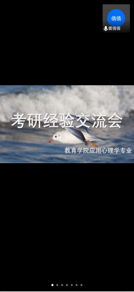 首先,邀请了被绍兴文理学院心理健康教育专业录取的20应心接本专业的黄倩倩同学,为大家分享了考研的学习经验。她为同学们做了个性化的经验分享。从专业、英语、政治三个方面分析,她表示要以基础为重,不要急于做真题,专业课题目要多看,错的题目要记下来,及时的复习。在英语方面,词汇背诵不要停,阅读需要有逻辑性。在政治方面,背诵相关预习题,梳理知识框架。她以自己的切身经验向同学们讲述了考研的宝贵经验,用风趣的语言、清晰的条理与坚定不移的态度,给备考的同学送上了一份暖心的祝愿。
