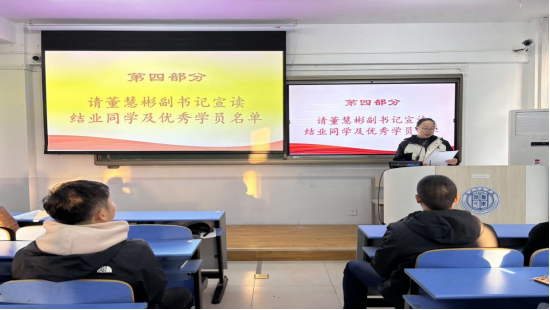 2024年10月22日下午,yL23411永利集团党校第七分校在实验楼304教室举办入党积极分子培训班结业仪式。永利集团党校第七分校校长、yL23411永利集团党委贾长胜书记、党委副书记董慧彬、组织员钟亚明、学生第一党支部书记彭盈雪、学生第二党支部书记黄静静出席结业仪式。