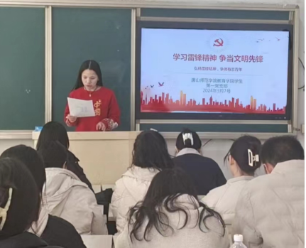 首先,由支部书记彭盈雪带领大家学习雷锋的生平事迹及贡献,同学们更为深刻认识了雷锋同志的无私与伟大,也更加坚定了弘扬雷锋精神的意志。