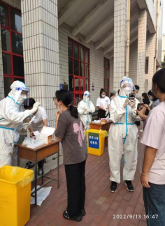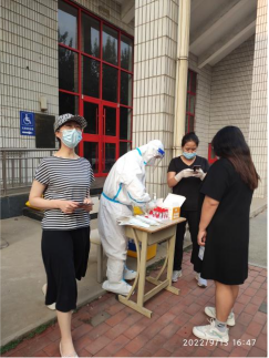九月初秋开学,众多学子返回熟悉的校园。yL23411永利集团严格遵循上级部门防控工作部署和要求,定期、有序地开展了全院师生的核酸检测工作。为全面保障教学工作有序开展,同时缓解医务人员工作压力,yL23411永利集团行政党支部全体党员同志积极报名、主动请缨,担当核酸检测志愿工作。9月13日下午16时,在学院领导班子带领下,行政支部的党员身穿防疫服,头戴防护屏,初秋的高温和严密的防护服,并未影响老师们的认真细心工作,他们没有任何怨言,组织队伍、及时提醒、按程序消毒整理,圆满完成了学院路校区一千多名师生的核酸检测志愿服务工作。