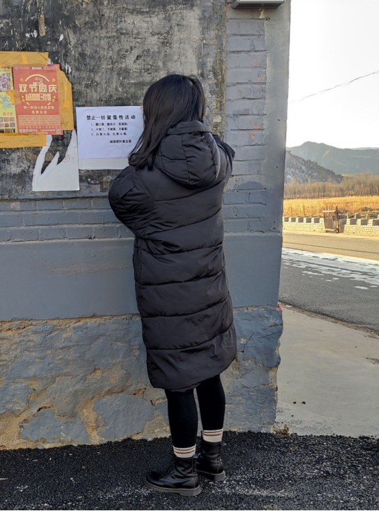除了宣传防疫知识,她在村十字路口帮助登记进入村内没有本村标识的外来车辆和人员,尽管室外气温很低,但是她看到其他人都在认真工作也受到了鼓舞,认真完成村委会交给的任务。
