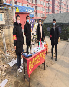 在疫情防控宣传站执勤 帮助医护人员派发口罩和消毒液