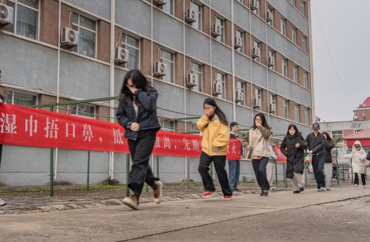 (演练现场,学生迅速有序撤离。韩劭宣摄)