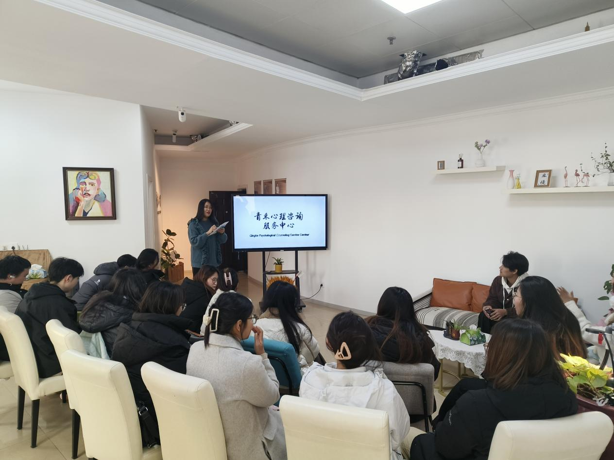青禾心理咨询公司则展示了温馨且专业的环境。同学们深入了解沙盘疗法,咨询师讲解其通过沙具摆放洞察来访者内心世界的基本原理。同时,还介绍了心理公益项目,如社区免费咨询、心理健康讲座等,凸显心理学在社会服务中的价值;动物疗愈项目则展示了如何借助动物陪伴缓解来访者心理压力;房树人测验的原理和应用也得以介绍,揭示通过绘画洞察人格特质和心理状态的方法。