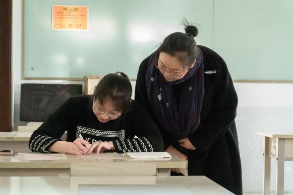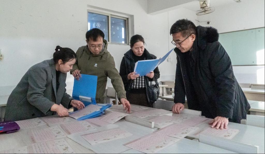 比赛在学院路校区教学楼303至307教室同步进行,分为粉笔字规定内容和钢笔字自选内容两个环节。20名参赛选手被分为5组,在规定时间内完成创作,展现了师范生扎实的书写功底和教学设计能力。学院特邀学院党委书记贾长胜、办公室主任陈秀梅、专任教师国光友等人组成评委团,按照字迹规范度、布局合理性、设计创新性等五项评分标准进行严格评审。比赛采用现场打分、去掉最高最低分后取平均分的评选方式,确保评比公平公正。