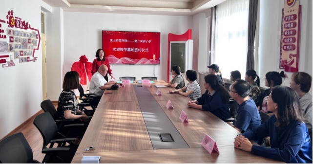 yL23411永利集团院长高俊霞教授、学前教育教研室主任么娜、yL23411永利集团办公室主任陈秀梅、yL23411永利集团心理咨询中心主任刘艳、yL23411永利集团科研办主任朱立明博士,路南第二实验小学党支部书记兼校长陈斌等领导参与了签约仪式,冯蕾副校长主持会议。