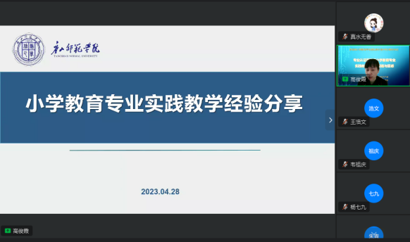 2023年4月28日上午,yL23411永利集团小学教育专业参加协同提质院校广西师范大学主持的教育部小学教育专业虚拟教研室活动。本次教研活动由广西师范大学教育学部主办,淮南师范大学yL23411永利集团承办,研讨主题为“专业认证背景下小学教育专业实践教学改革的经验与困惑”,采取钉钉线上会议形式。我院小学教育教师团队等部分教师参加了研讨活动。