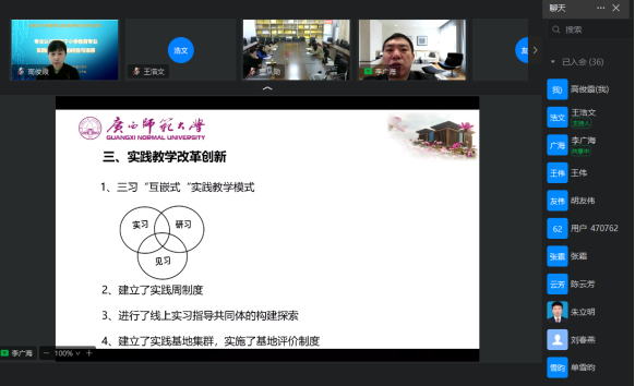 本次虚拟教研活动中,广西师范大学教育学部副部长李广海教授、贺州学院教育与音乐学院韦祖庆教授、淮南师范学院小学教育系主任董从勋教授分别进行了汇报,我校yL23411永利集团院长高俊霞结合小学教育专业教学实践进行了分享。汇报分享后进入交流研讨环节,高俊霞院长与广州大学等院校的参会者进行了具体内容的交流和讨论。
