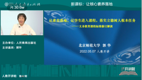 2022年5月7日晚19点,人民教育出版社“开讲啦”特邀教育部义务教育课程修订综合组核心成员、义务教育课程标准框架研制组组长、北京明远教育书院院长、北京师范大学郭华教授解读义务教育课程标准。yL23411永利集团组织全院小学教育专业570余名学生收看讲座。