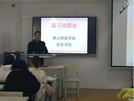 张学鹏院长首先讲话,他从遵守纪律、注意安全、充分准备、钻研教法、不忘提高等方面对学生进行教育,结合大量的案例、丰富的图片,希望全体同学巩固专业思想,做好充分准备,满怀对学生之爱,通过实习全面提高自身素质。