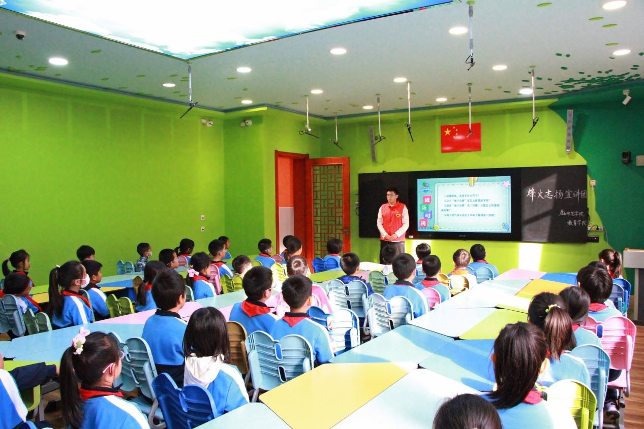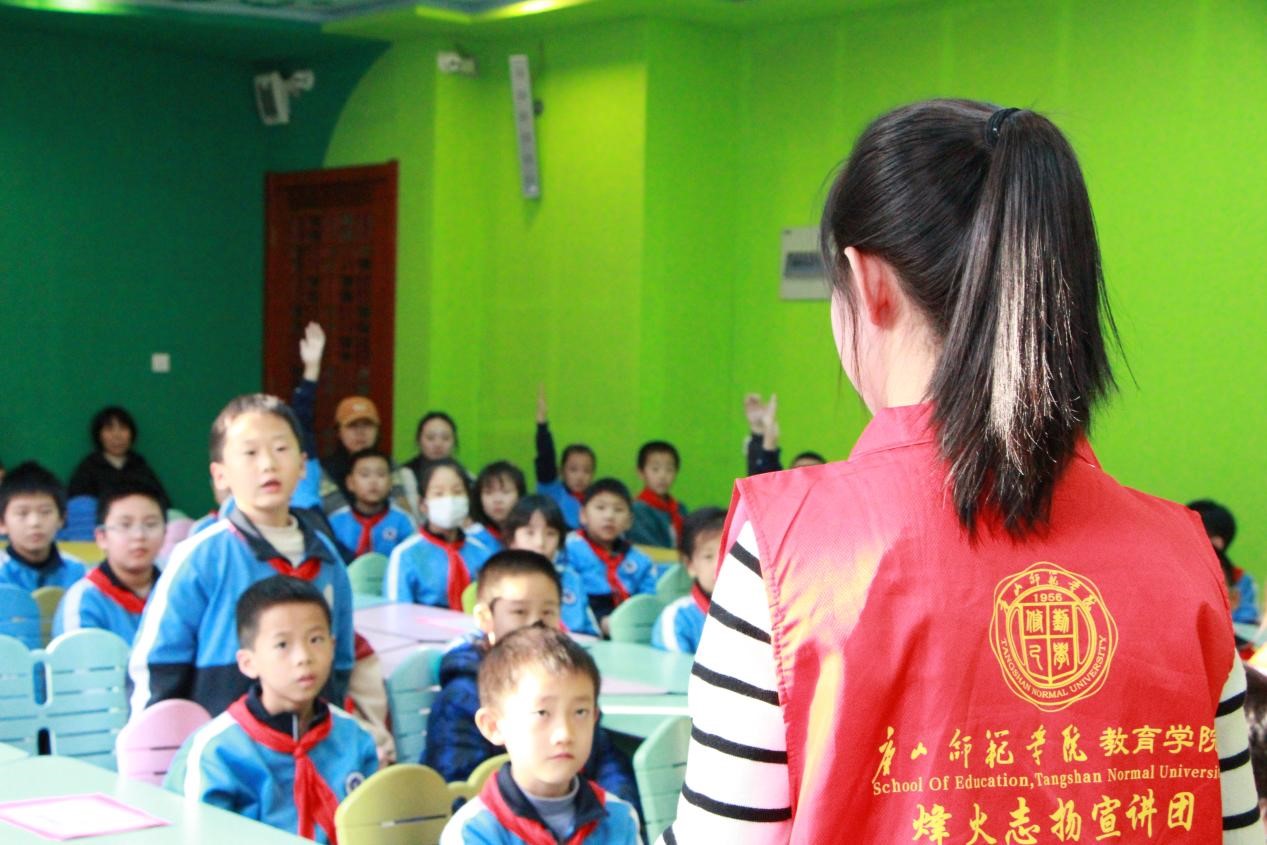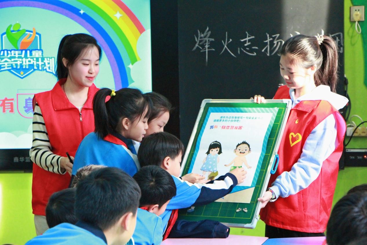 (宣讲团成员李欣宜、侯士博为小学生带来预防侵害相关知识)