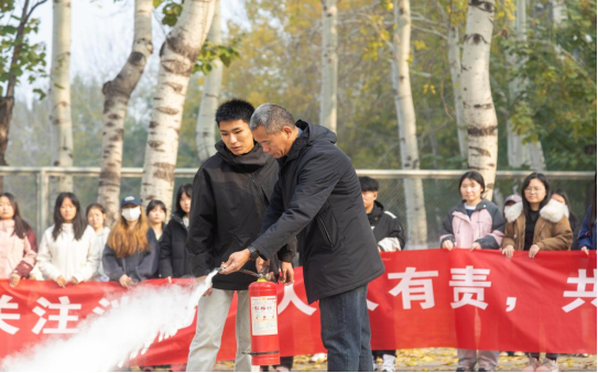 (杨长锁教学生使用灭火器)