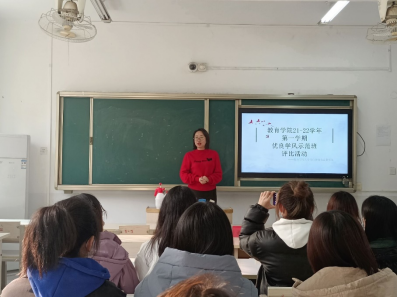 为更好地培养我校“勤思笃学,修身律己”的优良学风,调动同学们在教室卫生、上课出勤和考勤三个方面的积极性,增强同学们的自律意识,yL23411永利集团大学生自律委员会督察部于11月28日下午2:00在教学楼104举办2021-2022学年第一学期“优良学风示范班”评比活动。本次活动有幸邀请到董慧彬老师。获奖班级的各班代表参加此次活动。