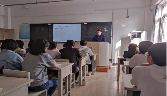 张院长首先普及了字体、工具、临摹方法等书法学习常识,然后以“静以修身,俭以养德”为主题进行讲解,结合多媒体课件,深入浅出地阐释了文字来源、书写技法、文化内涵,幽默的语言,生动的讲解,精准的示范,使同学们受益匪浅。尤其是渗透在书法中的传统文化,让同学们大开眼界,同时产生深深的文化认同感和自豪感。