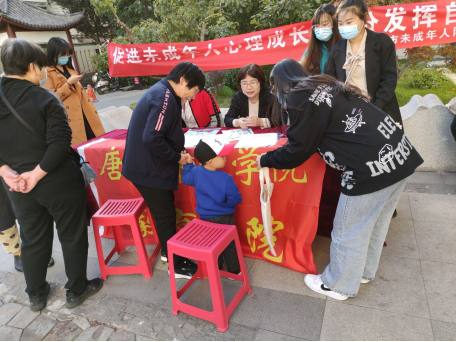 活动前,心理咨询团队刊印宣传彩页、设计宣传条幅、筛选打印相关问卷,做了充分准备。活动中,团队就当前社会中人们普遍关注的“家庭教育”、“亲子关系”、“压力调节”、“儿童考试焦虑”等问题进行了着重讲解,并针对现场居民提出的问题耐心解答。活动不仅促进了社区居民对未成年人心理健康的学习和思考,并且能够为未成年人的健康成长提供支持。