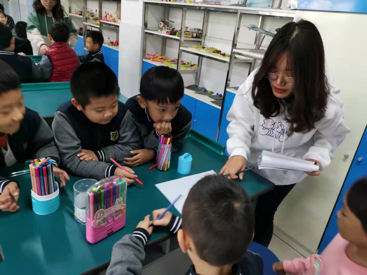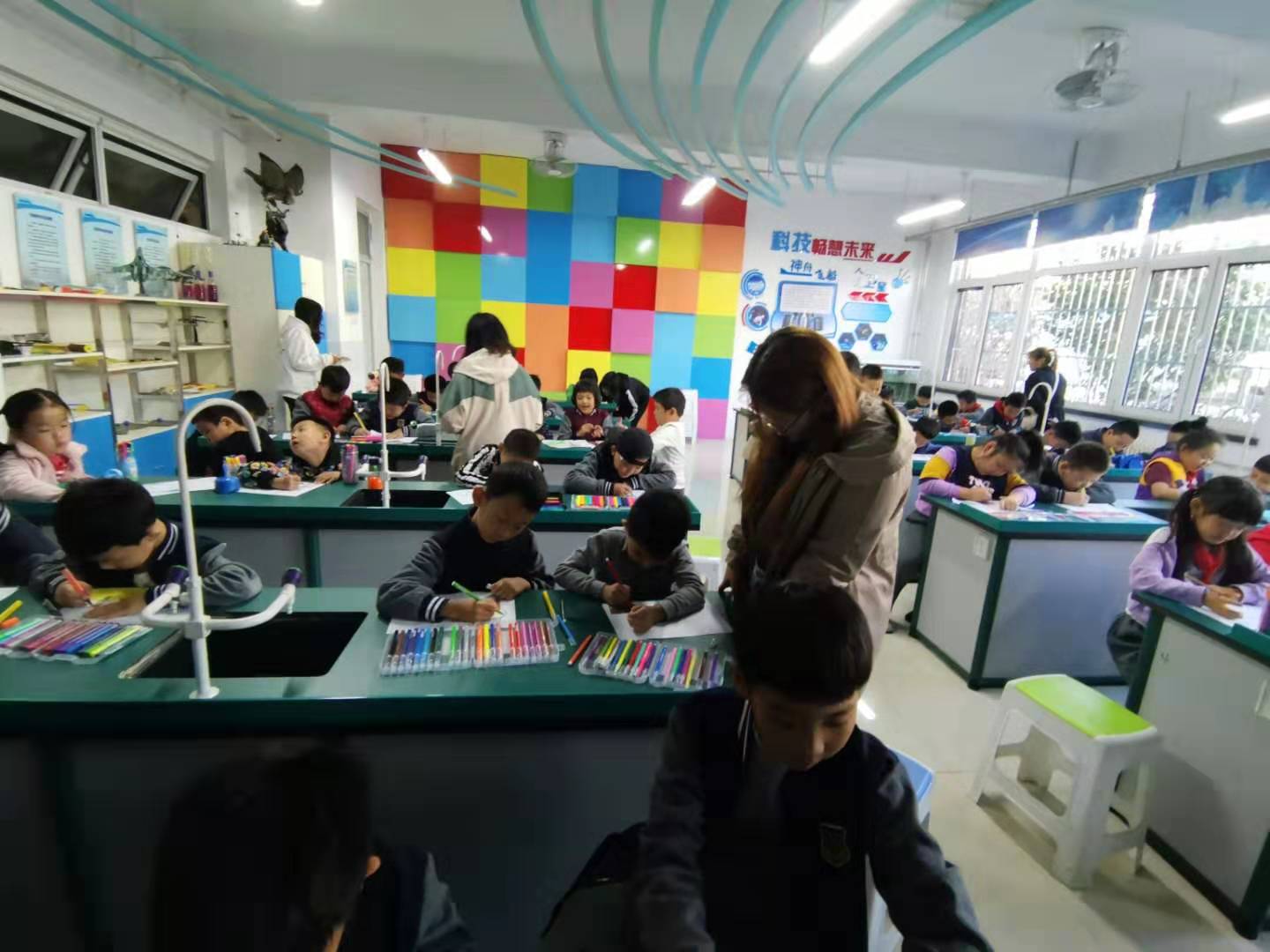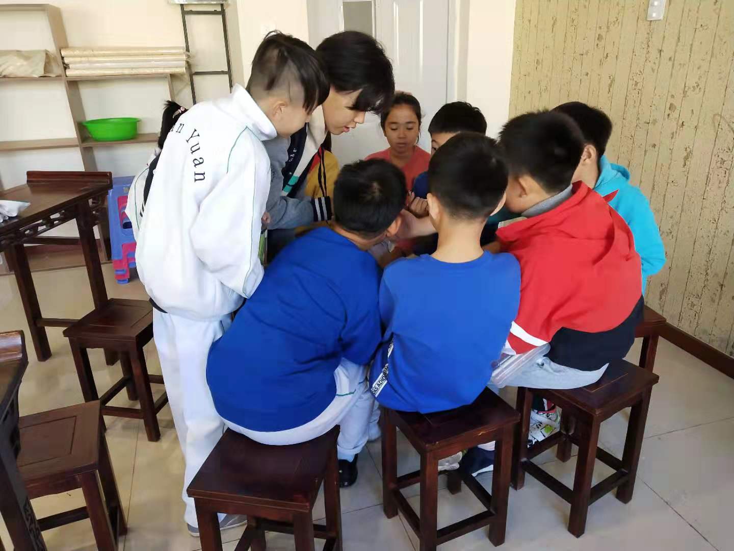 2019年10月14日下午两点,永利集团大学生心理咨询中心的10名志愿者到达唐城壹零壹实验学校。在与学校心理咨询老师商定好具体事宜后,志愿者们开始带领唐城壹零壹实验学校的一年级至五年级的近百名学生进行团体心理绘画活动。
