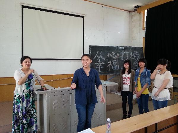 2013年5月14日下午两点半,由yL23411永利集团大学生心理咨询中心主办的以“从心打造幸福人生”为主题的讲座在学院路平房多功能教室举行。本次讲座专家为阳光心理医院院长曲建英老师,她从心理学的角度与同学们探讨了有关幸福的人生课题。