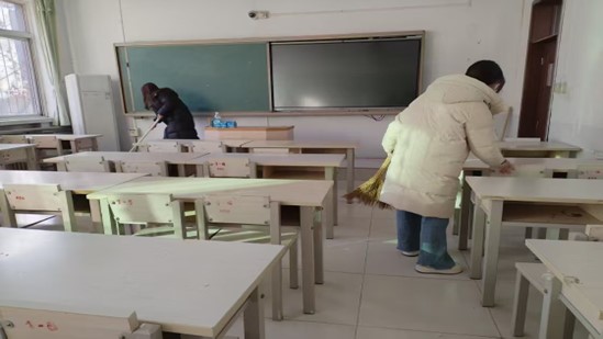 本次活动以“绿色行动,共建共享”为主题,实行网格化责任包干制,同学们按照班级分组,分工明确,互相配合。他们手持扫帚、抹布等工具,仔细清扫地面灰尘,擦拭门窗玻璃,清除墙壁上的污渍,多措并举,展现了同学们良好的精神风貌。在大家的共同努力下,校园环境焕然一新,为师生创造了更加整洁、健康的学习和工作氛围。活动结束后,教育学院党委副书记董慧彬老师和大学生自律委员会相关负责人对校园卫生进行了全面查验,发现问题及时指出并落实到各班各人,确保卫生打扫工作落到实处。