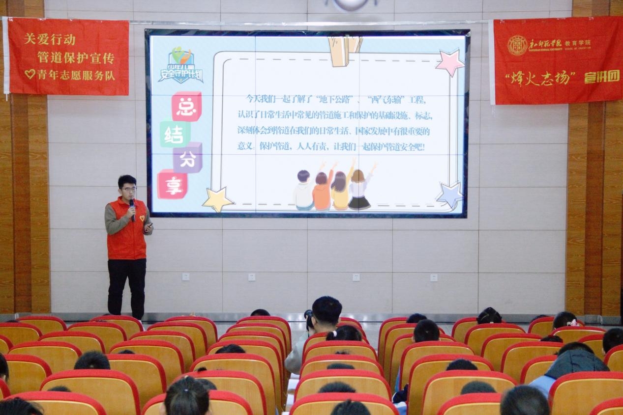 (在永利集团附属小学,宣讲团成员为学生带来管道安全相关知识)