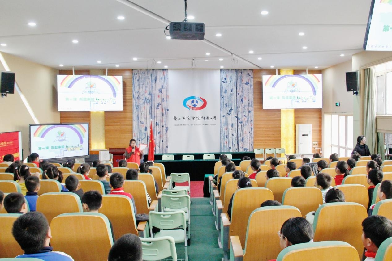 (在路北区外国语实验小学教育集团,宣讲团成员向学生讲述预防侵害相关知识)