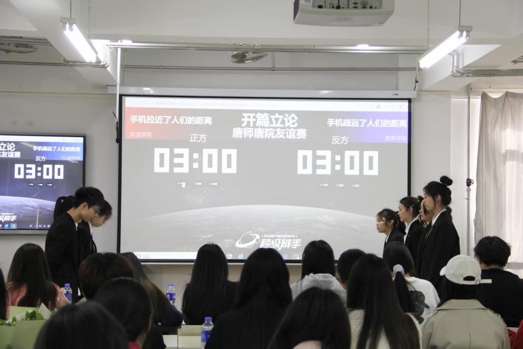 比赛当日,现场气氛热烈非凡,座无虚席。来自两所高校的辩手们精神饱满、意气风发,展现出了极高的辩论热情与专业素养。此次辩论赛共设置了两场比赛,辩题紧密贴合时代脉搏,引发了双方辩手的深入思考和激烈讨论。