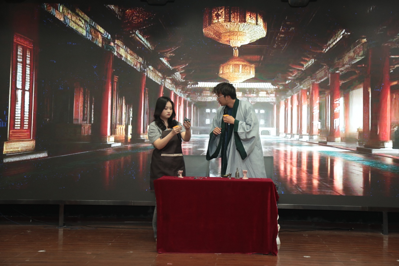 演出当天,校园南院十阶会议中心座无虚席。随着舞台灯光亮起,演员们迅速进入角色,将剧中人物的情感与故事生动呈现。从细腻的情感表达,到富有感染力的台词演绎,再到精心设计的肢体动作,每一个细节都展现出社团成员对中文艺术的深刻理解与热爱。跌宕起伏的剧情、扣人心弦的情节,让观众沉浸其中,现场不时爆发出热烈的掌声。