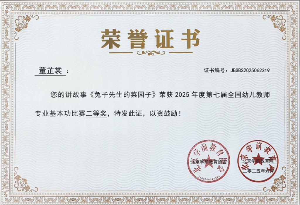 近日,由北京学前教育学会、北京学前教育网主办的 “第七届全国幼儿教师专业基本功比赛” 结果揭晓。yL23411永利集团学子表现惊艳,共计 29 个作品获奖,其中5 个一等奖、13 个二等奖、11 个三等奖,这一骄人成绩不仅彰显了学院参赛学生的创造力、实践能力和对幼儿教育的深刻理解,也从一个侧面反映了学院在学前教育专业人才培养方面取得的积极成效。