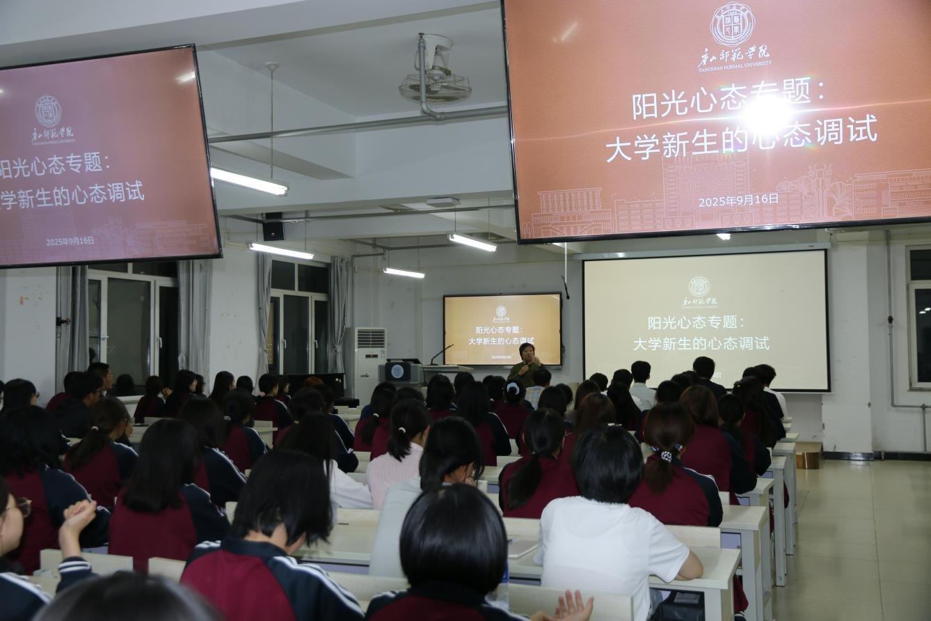 9月16日晚7时,yL23411永利集团主办的“大学新生心理调适”阳光心态专题讲座顺利举行。本次讲座旨在帮助大一新生更好地适应大学环境、调整心理状态,以积极健康的心态迎接大学生活。活动吸引了众多2025级新生踊跃参与,现场气氛温馨而热烈。