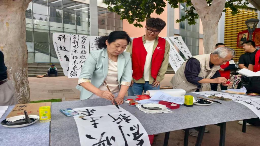 在科普书法展示区,yL23411永利集团的志愿者们与老科协的书法爱好者们互动频繁。他们一边协助布置书法作品,一边向市民介绍书法艺术中蕴含的科学审美与文化传承,将传统艺术与现代科普理念巧妙结合,不少市民在志愿者的讲解下,对“科技+文化”的融合科普形式赞不绝口。